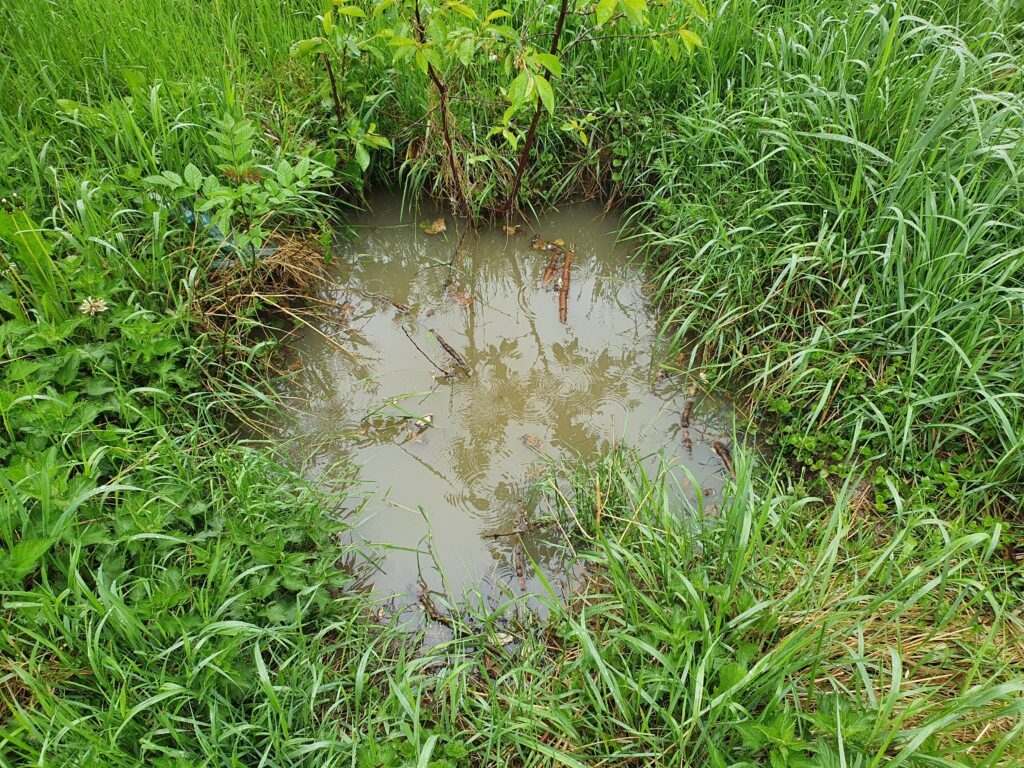 W dniu badań, w najniżej położonych punktach działki geolog zaobserwował wodę z opadów atmosferycznych, zalegającą na słabo przepuszczalnych gruntach nasypowych.