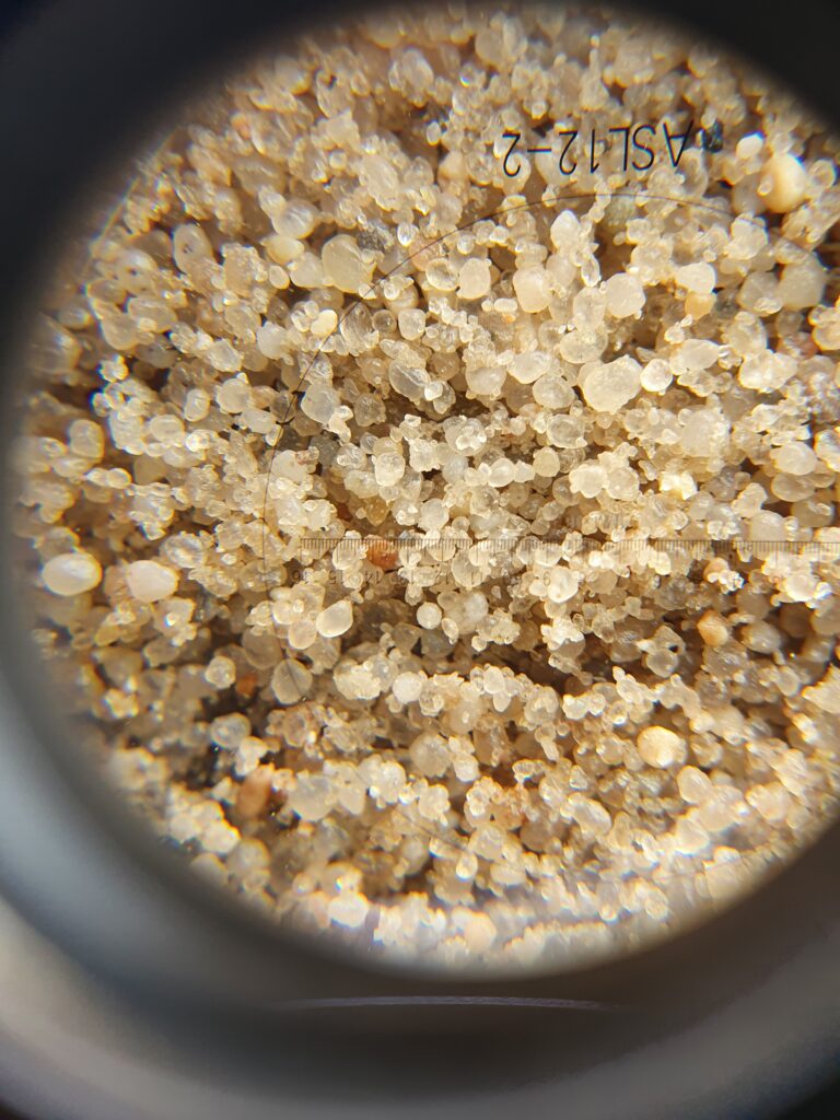 Frakcję gruntów piaszczystych określiliśmy za pomocą lupy x10 z dokładnością podziałki 0,1 mm.