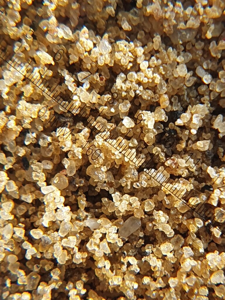 Analizowane piaski średnie są dobrze przesortowane, średnio obtoczone. Piasek składa się głównie z ziaren kwarcowych, tworzących formę sześcienną o gładkiej powierzchni.