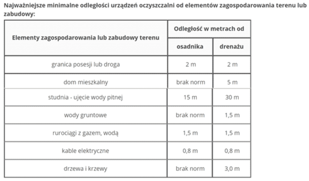 – poziom wody gruntowej musi znajdować się co najmniej 1,5 m poniżej głębokości ułożenia drenów lub dna studni chłonnej.